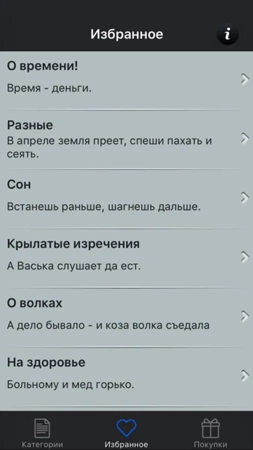- просмотр пословиц не требует подключения к Интернету;