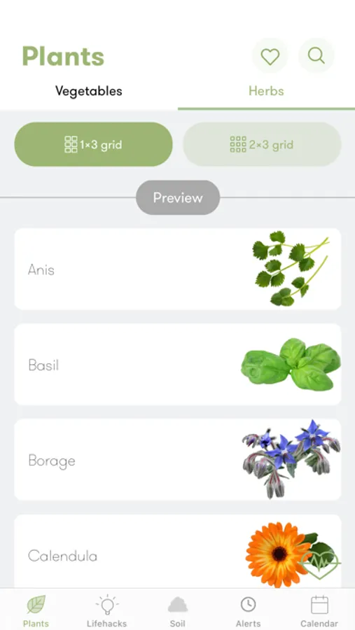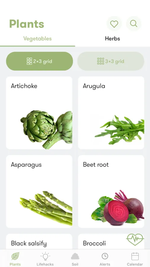 The free version of the app includes 9 vegetables and 9 herbs. There are two in-app purchases within Veggie Grower: the first one activates the complete list of vegetables including all future items. The second one activates the complete list of herbs including all future items. You can decide if you are only interested in one, two or both of the collections.