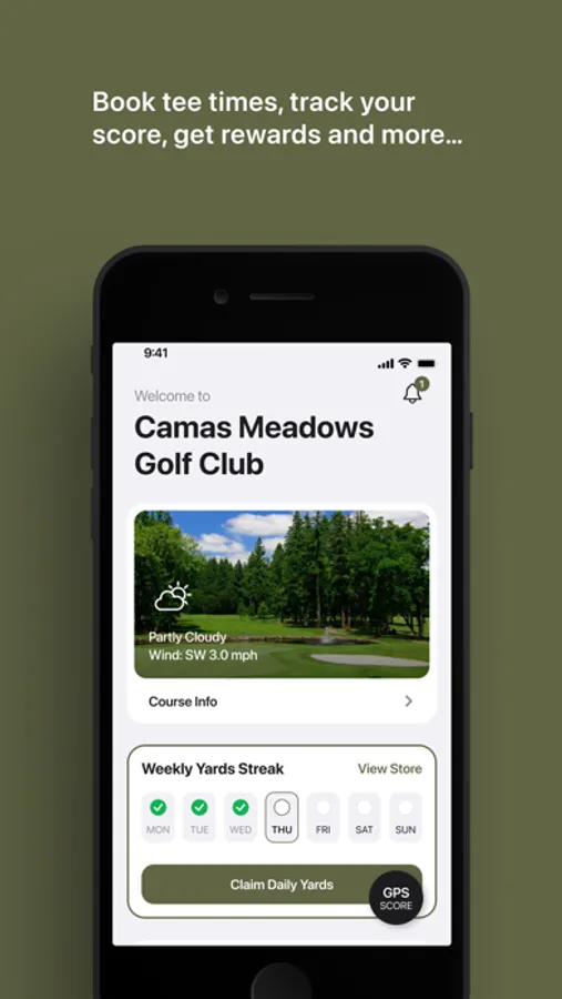 Get the Camas Meadows Golf Club app to conveniently reserve your tee times, use GPS, track your score, and view our course social feed. Booking is fast and easy with just 3-taps. Look up your reservations at any time or view and redeem your rewards or promotion codes.