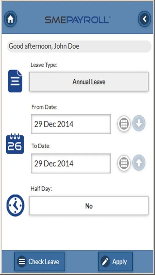 The app also provides an option to view the Pay slip indication Basic pay, all allowances, all deductions, Overtime, employee employer CPF contribution, SDL, Levy, etc.