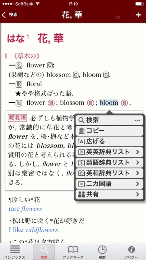 ■ 語義やブックマークをメールやFacebook, Twitterなどに出力可能