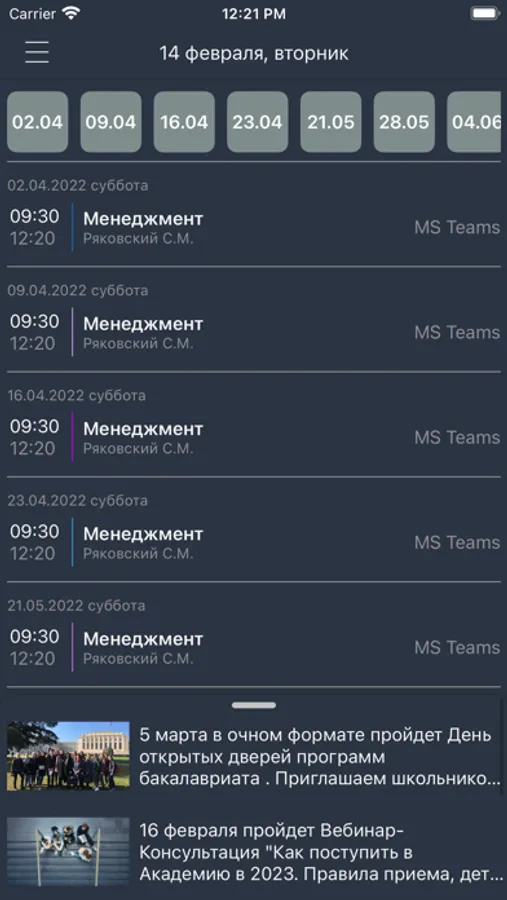 4. Новости и события академии + виджет (iOS 14)