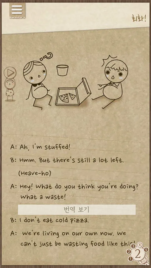 회화 페이지: 본 강의에서 배운 표현을 활용한 자연스러운 대화 연습. 원어민 발음으로 재생