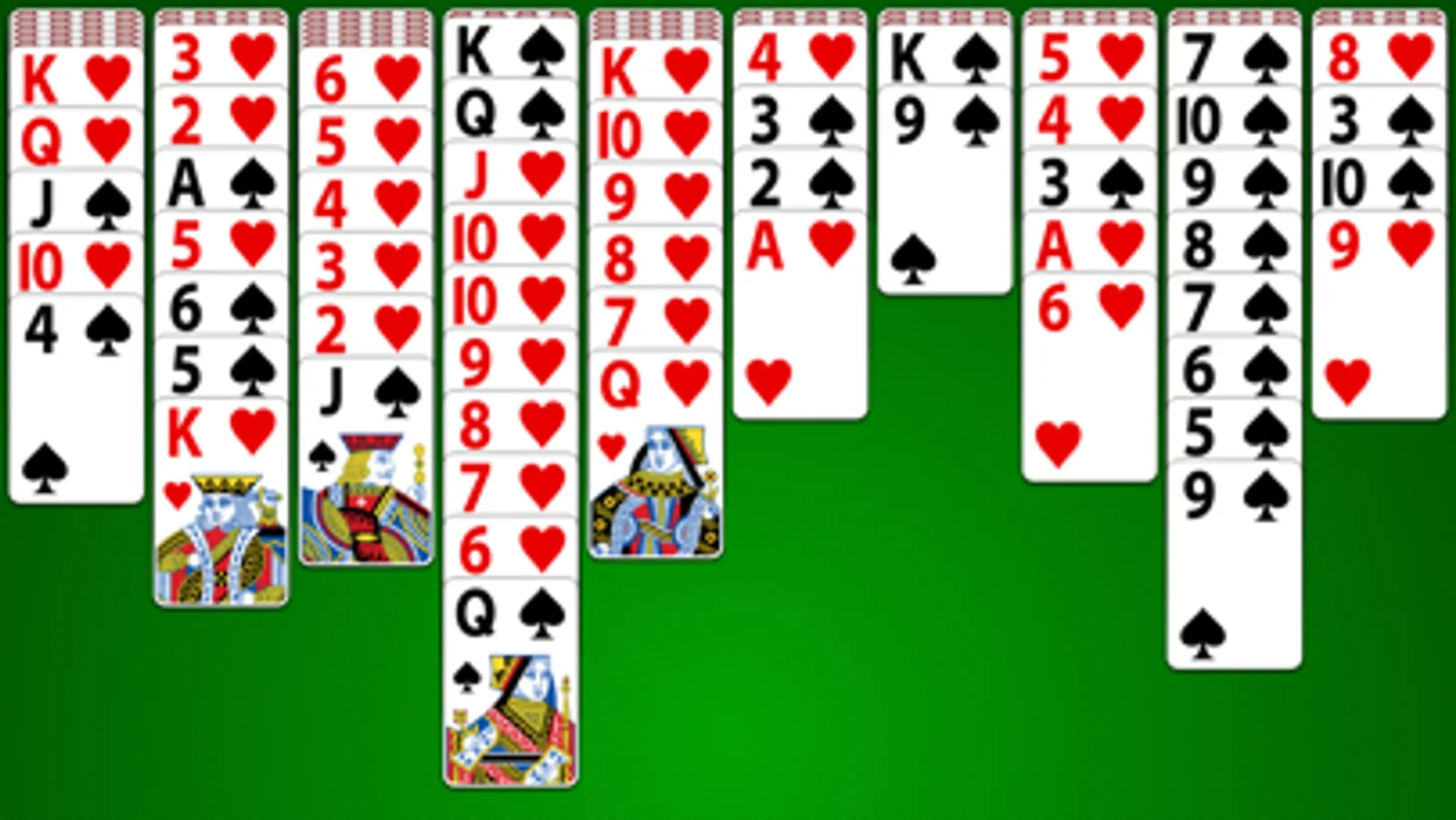 The goal of Spider Solitaire is to arrange all cards into complete suits in descending order from King to Ace. Every complete suit of 13 cards is discarded automatically as soon as it is created. The board consists of 10 stacks and a stock. Moves to a stack must be made in descending order regardless of suit. Any card can be moved to an empty slot. A sequence of properly ordered cards of the same suit can be moved together.
