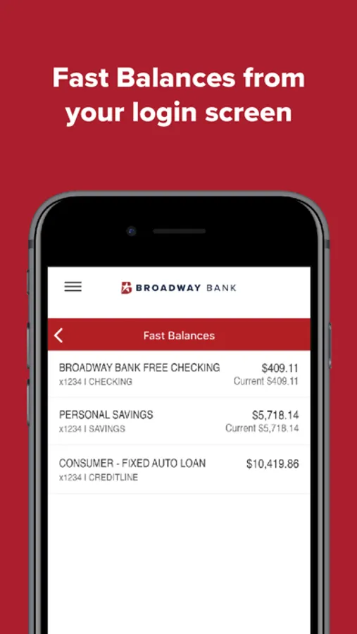 · Check account balances without logging in – Take a quick peek at your account balance. Our new Fast Balance feature lets you view up to six accounts from the login screen of your Mobile Banking app.