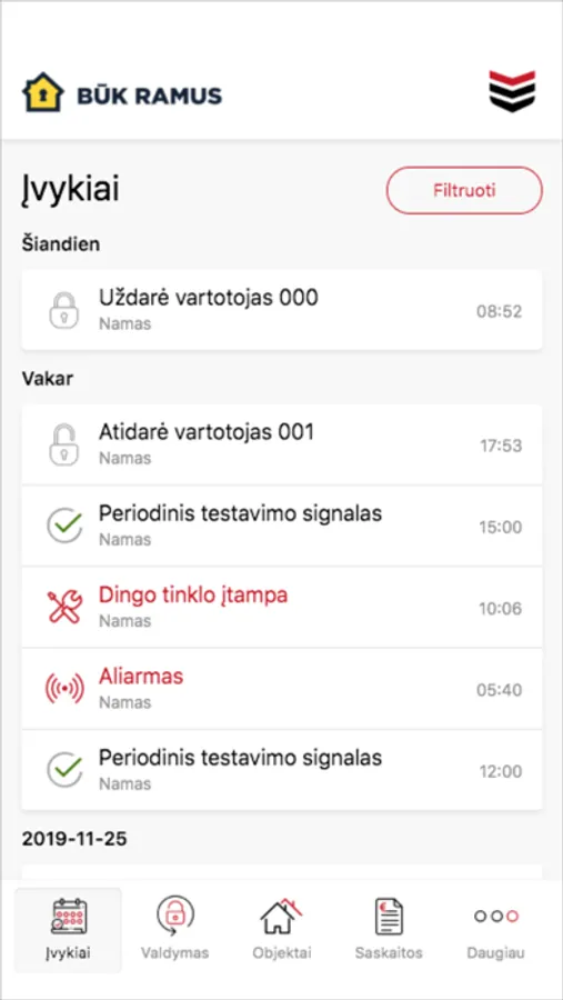 • Gauti kiekvieno saugomo objekto apsaugos sistemos pranešimus: