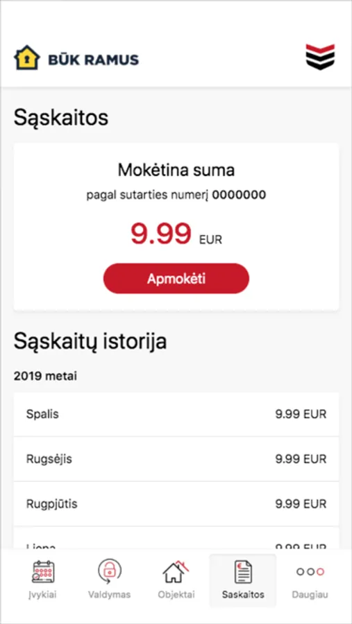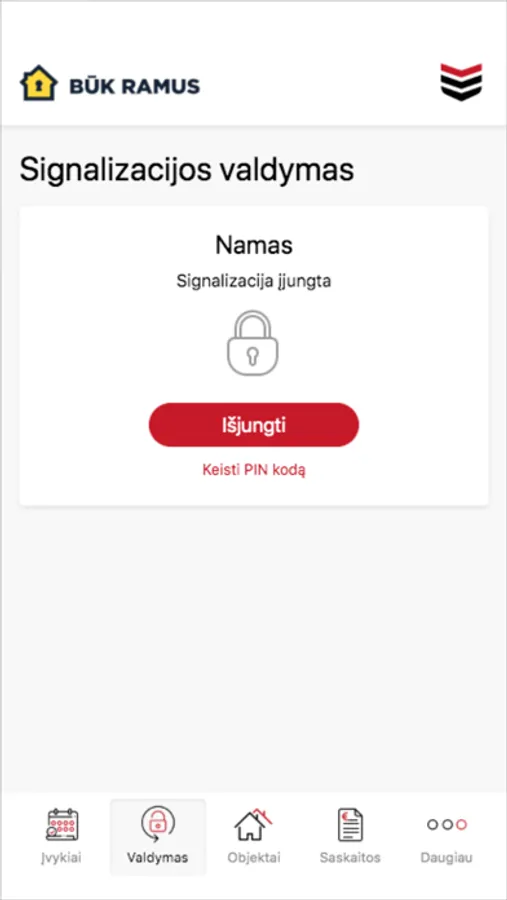 BŪK RAMUS programėlė skirta saugos tarnybos „Ekskomisarų biuras“ klientams.