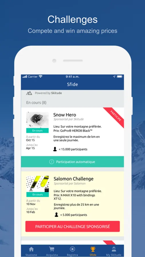 Set up your Skitude profile to track your activities using the GPS tracker. Find out where you are in the season's rankings and try to complete the challenges to be in with a chance of winning great prizes.