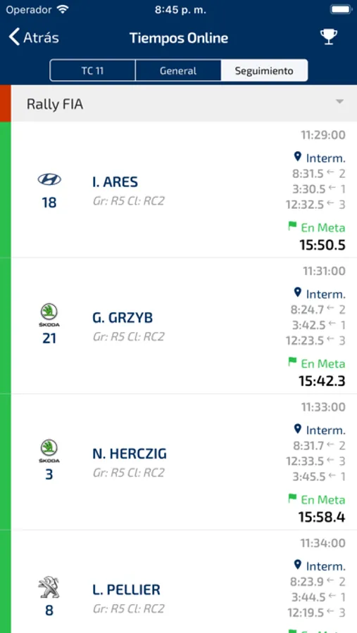 - Sistema de tiempos online por tramo, general y seguimiento de participantes con tiempos intermedios.