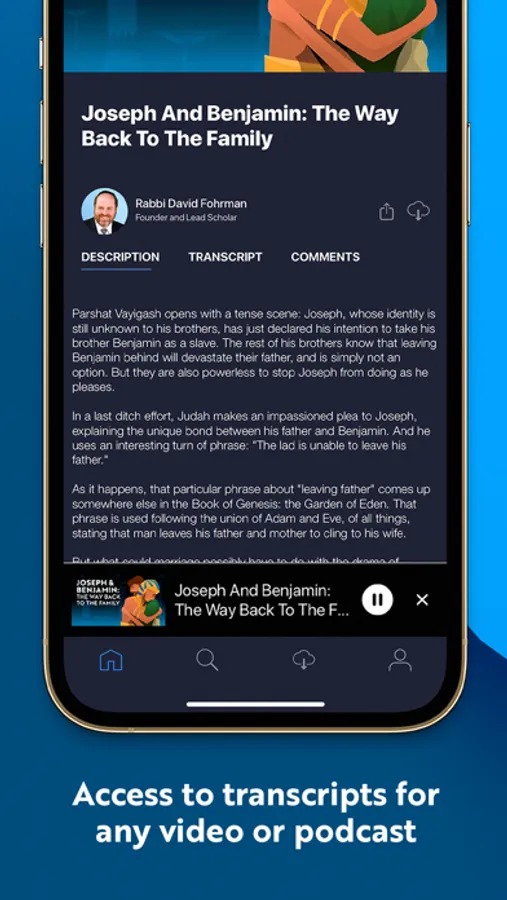 Our app is totally free to download, and we provide 30 minutes of free content a month for you to watch, listen & enjoy. For unlimited access to streaming, downloading, transcripts, parsha learning guides & much more, we offer a Premium membership for a small monthly or annual fee (see details below).