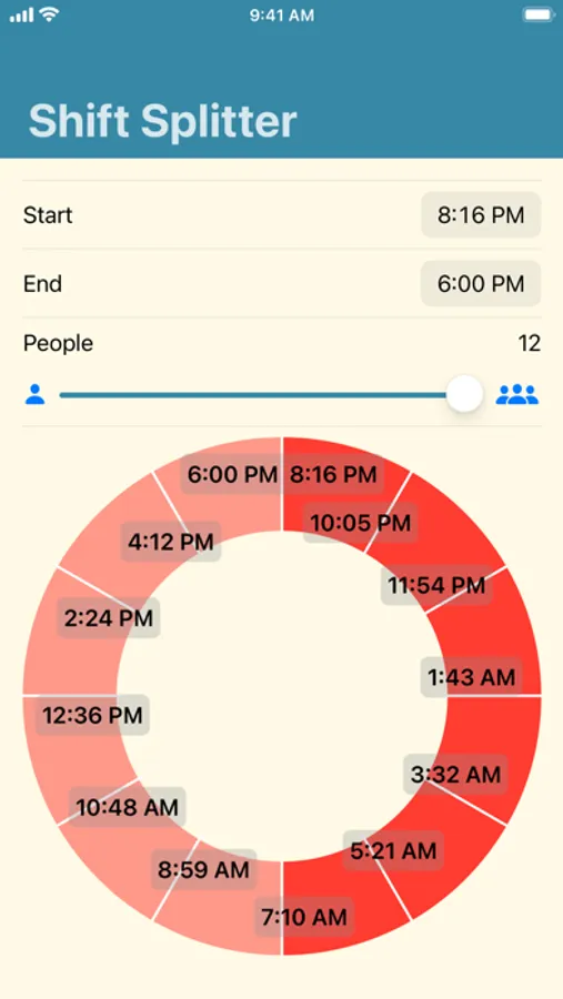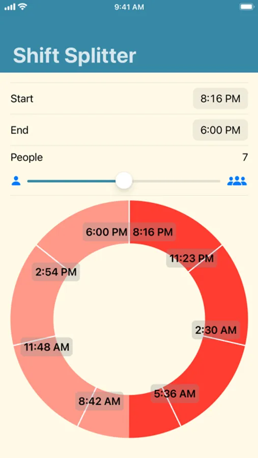 Be it the hours of rest in the hospital, the hours of children's TV or turns driving at night, do it easy with ShiftSplitter.