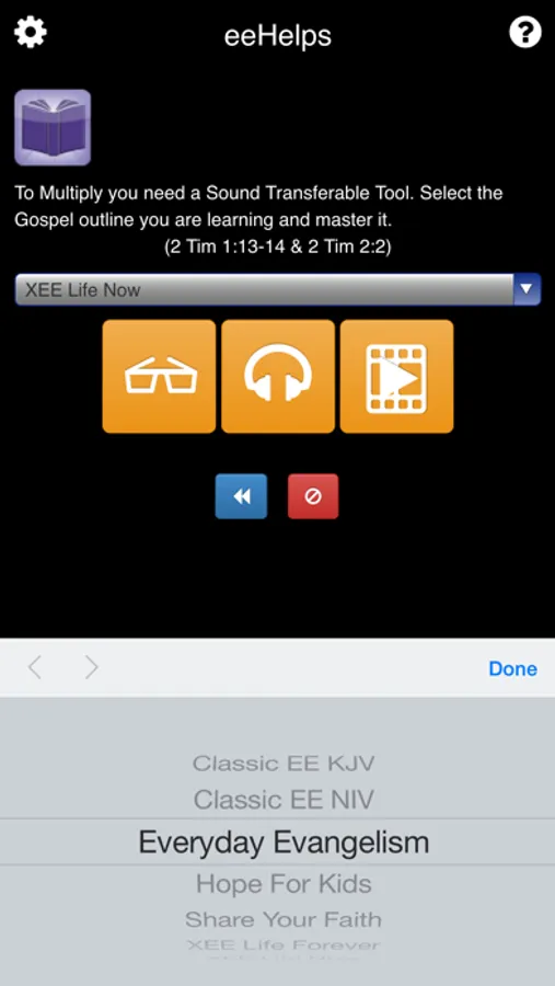 eeHelps is a Training and Personal Witnessing Assistant for you and your church teams. With the touch of your fingertips you can easily share church invites, your personal testimony, and free gospel tracts. A variety of Questionnaires (or surveys) help you find people open to hearing the Good News during witness training, outreach and missions trips. Learning Cards for EE's Gospel outlines are included to help you master your explanation of the Good News. Log Witnessing Reports from your evangelism activities and see where God is working in your city and around the world.