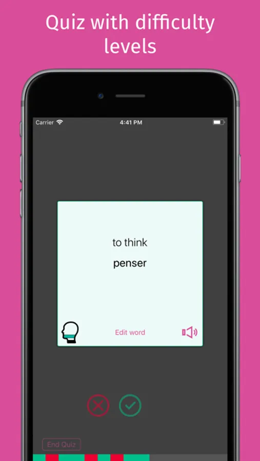 • Two quiz modes let you review your words according to your personal learning preferences
