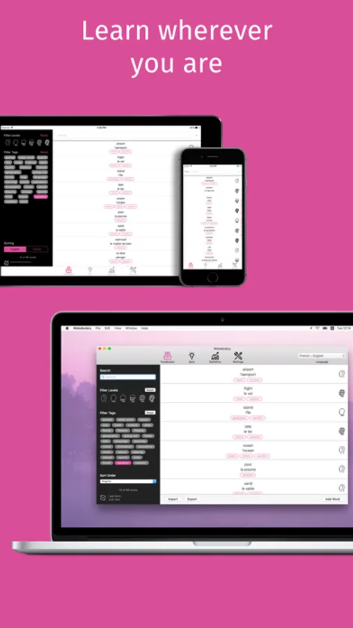 Wokabulary is available for your Mac, your iPhone and your iPad and it can automatically sync your vocabulary between your devices.
