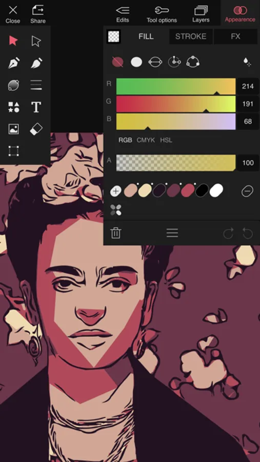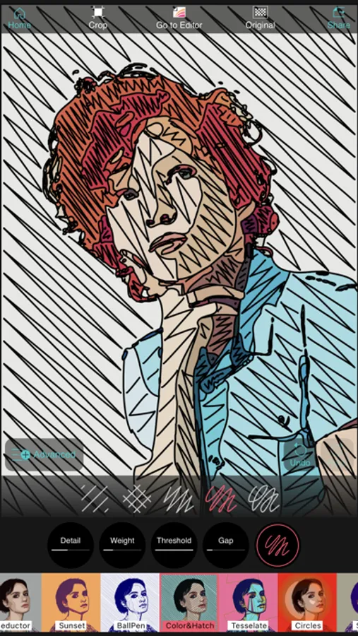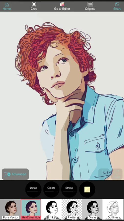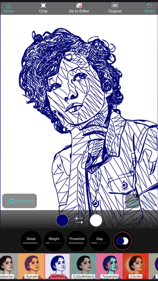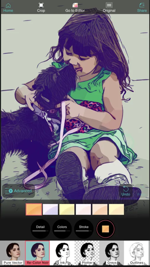 Turn your pixel-format pictures into fully editable vector drawings. With custom filters you can get from a standard vectorization with unlimited colors, crispy grayscale images, two-tone stencils, original Pop-Art drawings and amazing polygonal shapes.