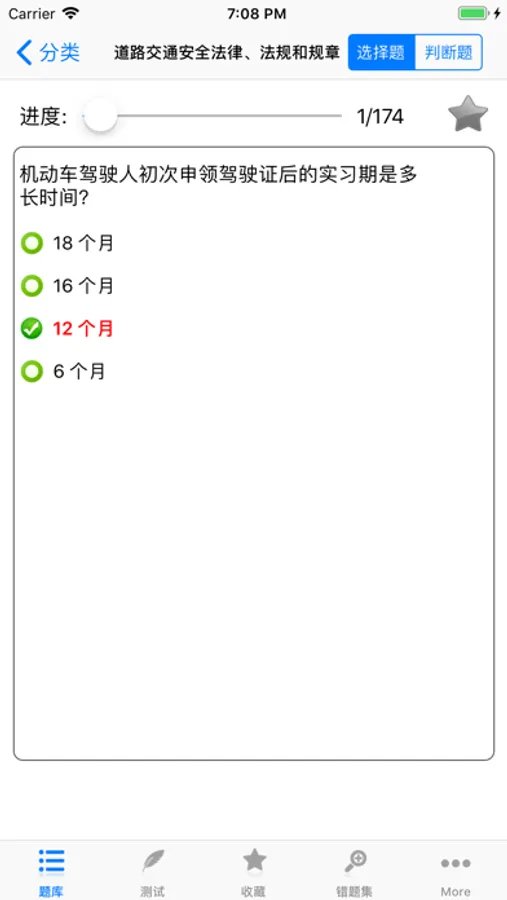 * 分类学习: 题目分门别类,每类选择题与判断题可随时切换