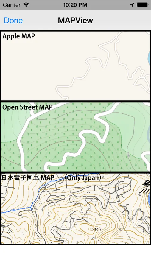 ・I can select the map view from "AppleMAP"or "OSM" or"Ordnance Survey map (Japan only)".