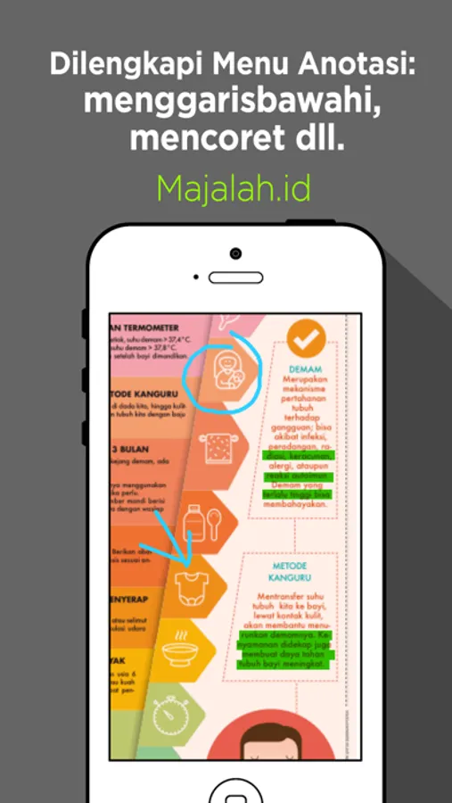 Aplikasi 'Majalah Indonesia' juga di lengkapi dengan fitur Anotasi yang memungkinkan penggunanya untuk mencoret, menebalkan, menggambar dan membuat catatan di suatu halaman saat membaca majalah yang ada di dalam 'Majalah Indonesia'.