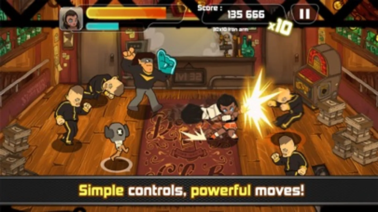 Touch controls are smooth, responsive, and easy to learn: one-finger swipe to punch / kick, tap to counter, and two-finger swipes for special combos. When your super combo gauge fills up, all hell breaks loose—beat down the bad guys with hectic in-your-face combo streaks!