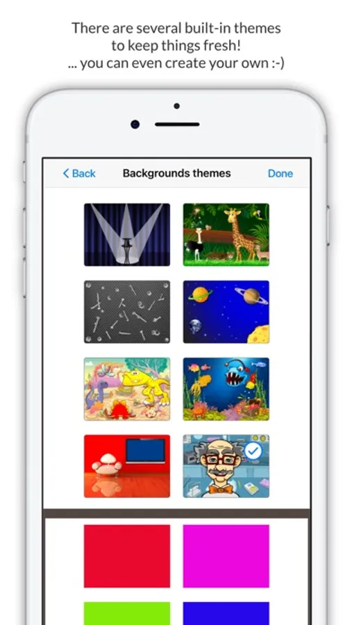 • The Animated Graphics and multiple themes make the whole experience a pleasure and keep things fresh for the students. You can even create your own backgrounds.