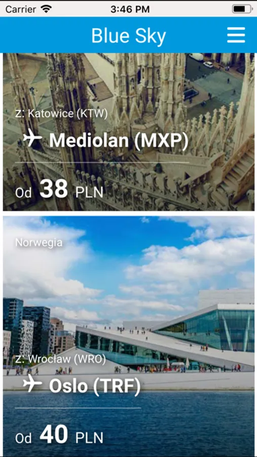 "Blue Sky" application alows you to plan and reserve travel. Thanks to the app you can purchase an airline ticket on any apple device, anytime, any place. After choosing a flight you can book and buy it immediately, without being transferred to another web site.