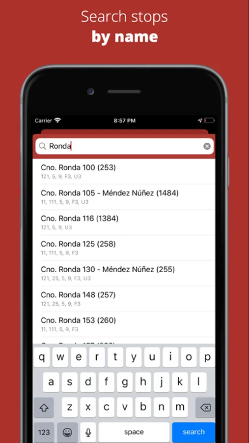 Check how long takes the bus to arrive to the stop by stop number or street name.
