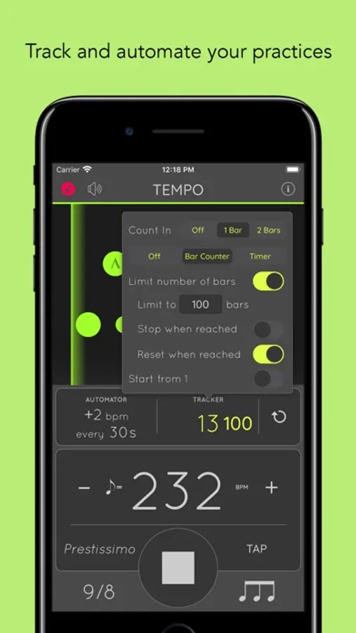 As a special treat, we've included the Tracker Module which helps in your practices by tracking the number of bars or time played.