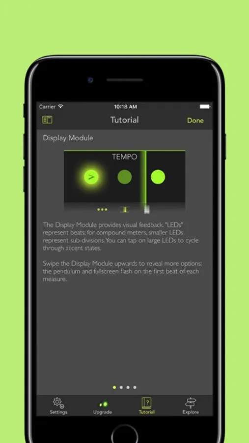 Tempo Lite's engine is written from the ground up for high accuracy and stability. It keeps going even in device lock mode, making it a useful aid for live drumming.