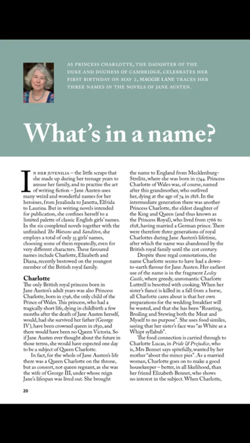 The magazine is published six times a year in Bath, England, and is mailed to fans of Jane Austen and the Georgian/Regency era worldwide.