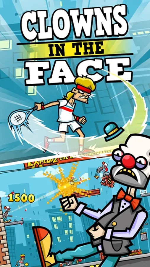 Playing Clowns in the Face is easy: Simply move your finger on the screen, observe the aiming line, and lift your finger to serve a furious tennis smash.