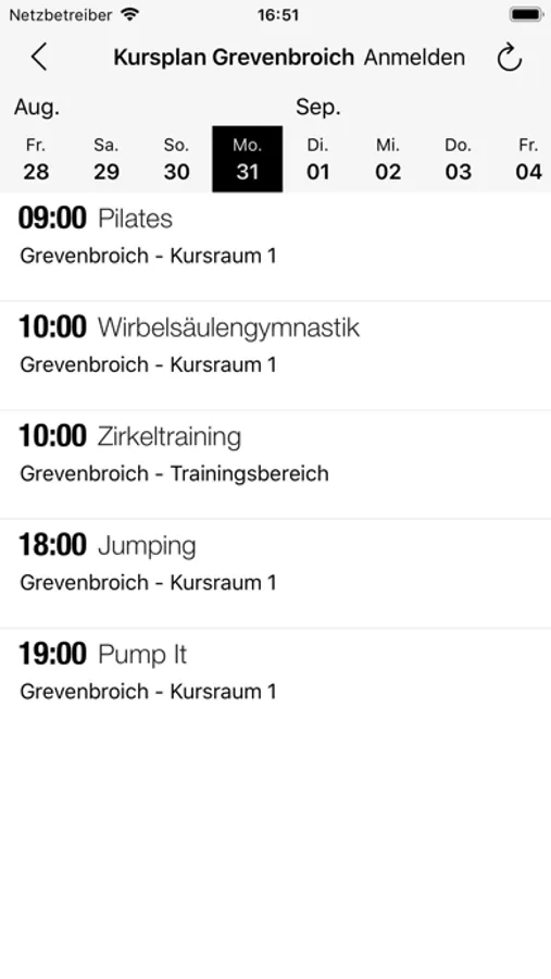 Direkter und aktueller Zugriff auf den Kursplan Ihres uniquesport Clubs von überall: Für jeden Kurs können Sie Details wie Zeit, Kursbeschreibung, Raum und Merkmale wie z.B. den Schwierigkeitsgrad einsehen.
