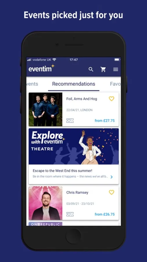 • Personalise your homepage, based on your location, interests, favourite artists, genres and venues