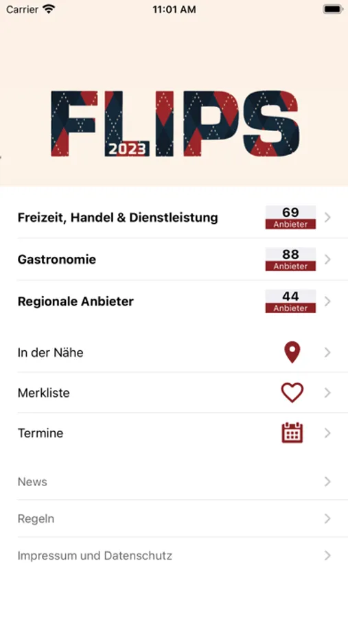 Die praktische Was-Wann-Wo-App ist die ideale Ergänzung zum flips Gutscheinbuch 2023. Sie ermöglicht das schnelle Auffinden von Angeboten, unterstützt bei der Planung der nächsten flips Besuche und enthält alle aktuellen Gutscheindaten.