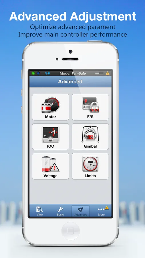 - Advanced Settings:Motor,F/S,IOC,Gimbal,Voltage,Limits