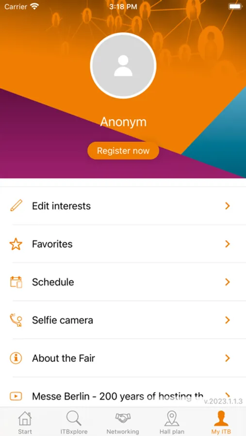 You can create lists of favorites directly in the app or log in with your profile from the ITBxplore platform and have your favorites, contacts and meeting schedule displayed in the ITB app as well.