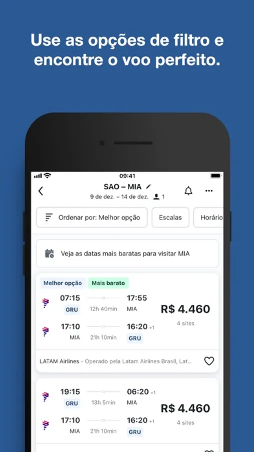 • Filtre os resultados para encontrar a melhor oferta para você.