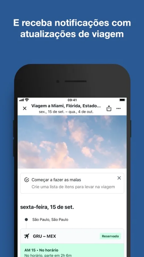 • Encontrou o voo ou hotel? Adicione aos favoritos e receba e-mails ou notificações quando o preço mudar.