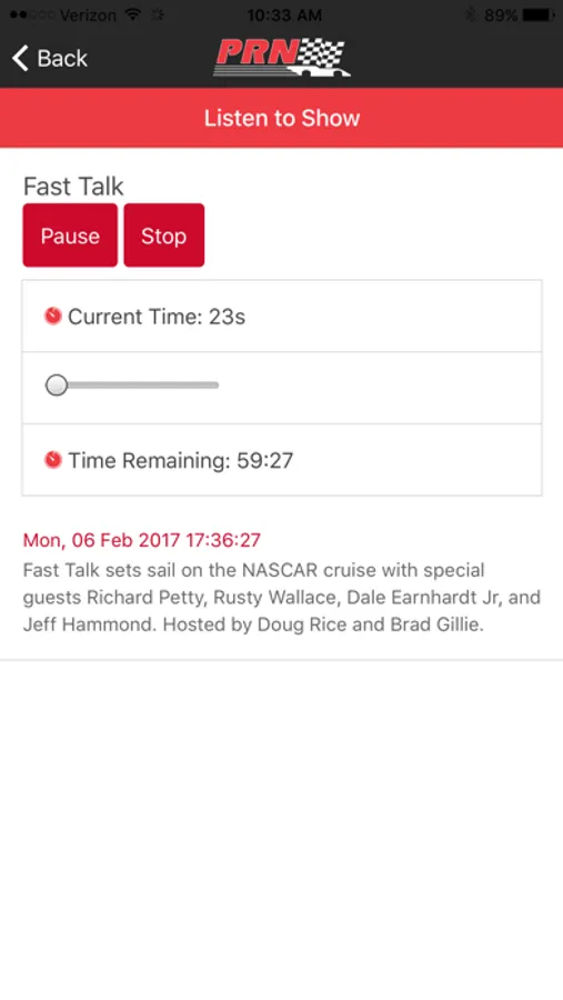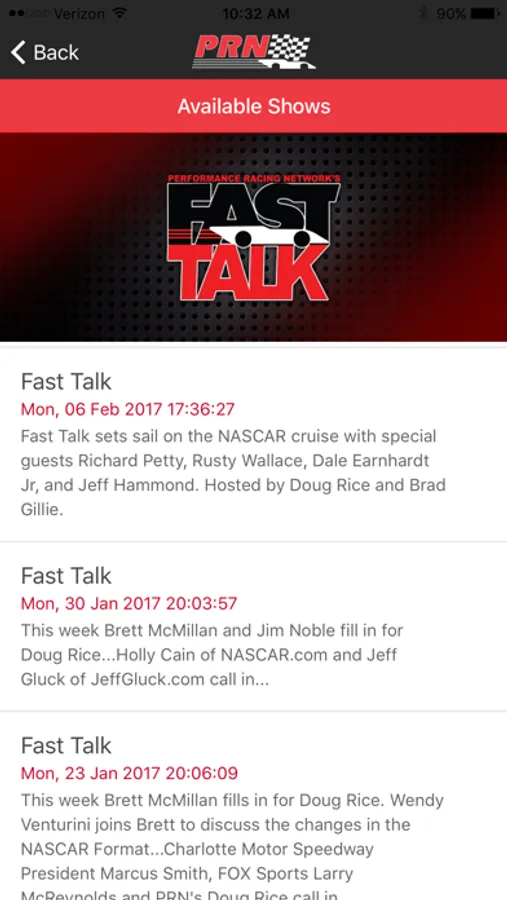 The Performance Racing Network (PRN) is one of two NASCAR licensed multi-broadcast radio networks which markets, produces and distributes motorsports programming 365 days a year. PRN broadcasts 13 Monster Energy NASCAR Cup Series races, twelve NASCAR Nationwide Series events and produces "Fast Talk", "The Pit Reporters", "Garage Pass" and "zMAX Racing Country."