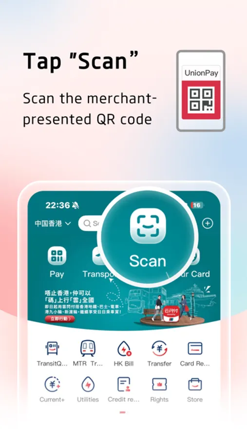 1. Scan-to-pay feature with UnionPay's financial-grade security protection, ensuring worry-free fund security.