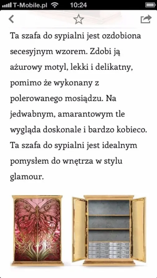 Możesz zapisywać ulubione treści i zdjęcia na urządzeniu oraz dzielić się nimi za pośrednictwem e-maila, facebooka lub twittera.