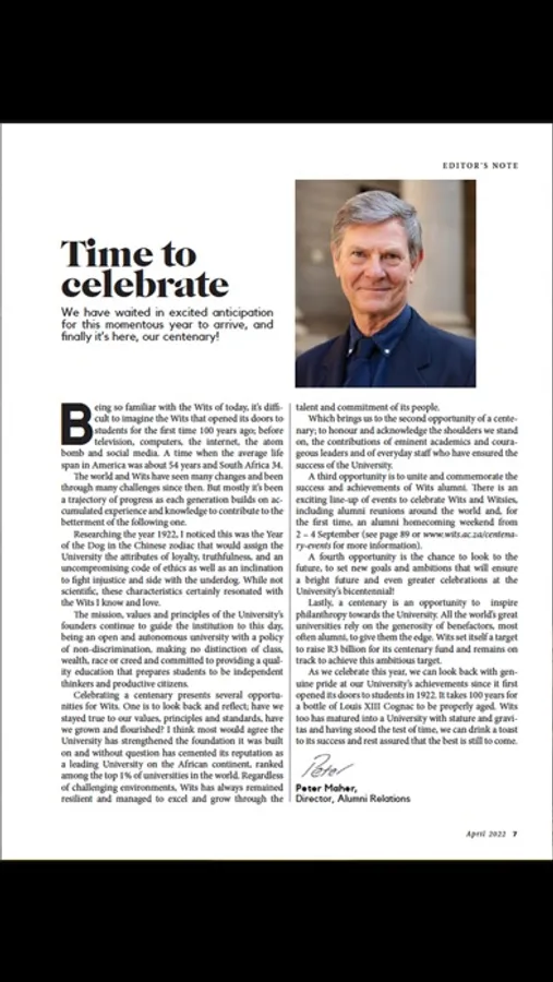 Contact alumni@wits.ac.za or visit www.wits.ac.za/alumni