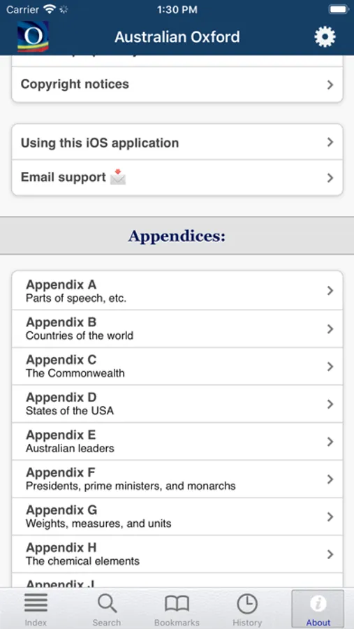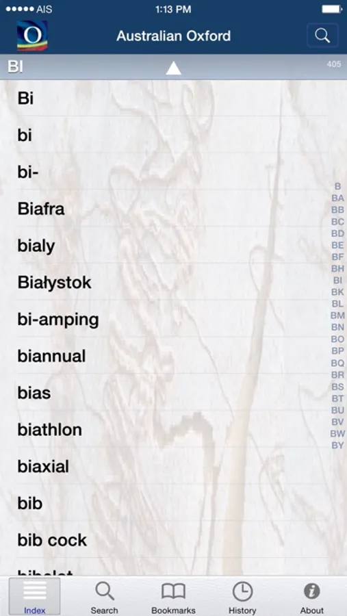 The complete contents of the 1800 page Australian Oxford Dictionary, 2nd Edition