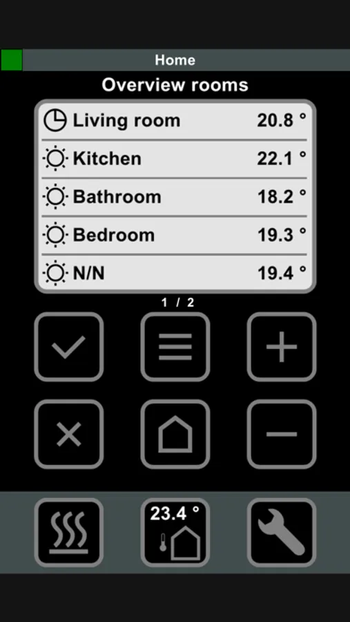 Once the app has been installed, it is possible for you to see actual temperatures, to change set points, and to check and change the mode of operation of each individual wireless room thermostat. It is also possible to change the mode of operation of the entire system with just one touch. You can name your rooms in the configuration menu to make the system very easy to view and control.