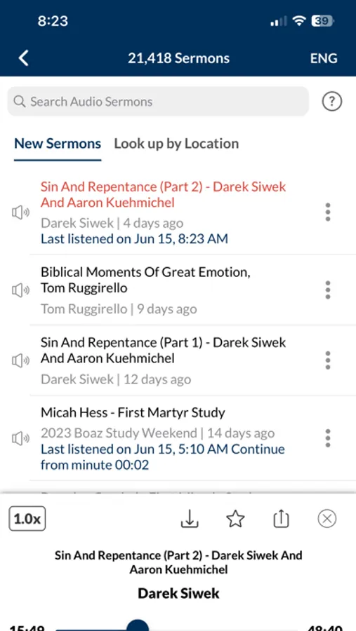 You have the option to download audio files and sermons and listen to them when you don't have internet connection. You also have the option to add them to a favorites menu, or view the browsing history.