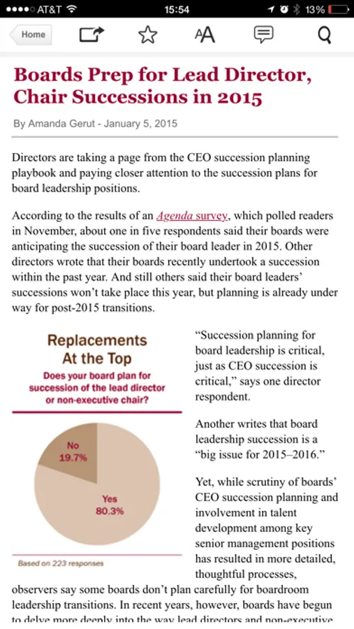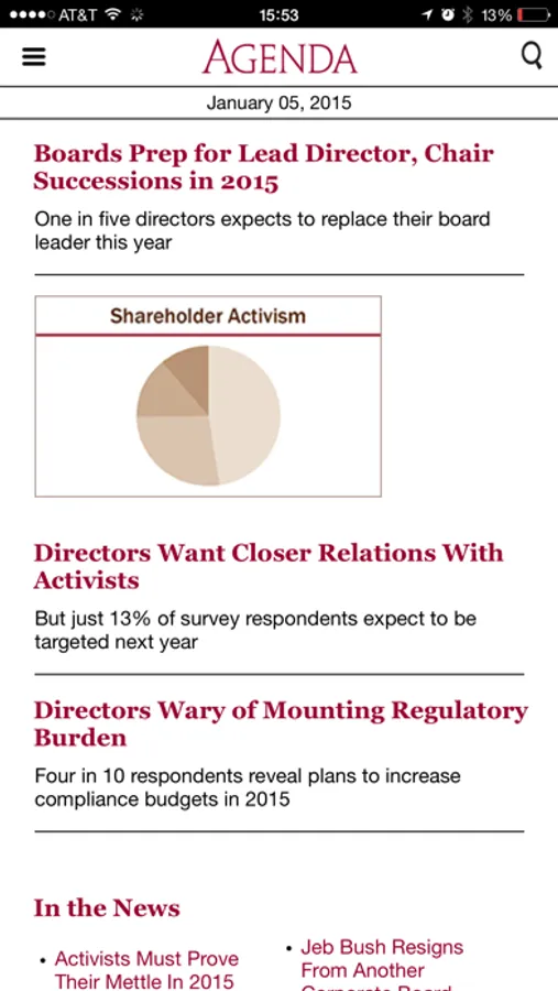Agenda is a leading boardroom platform, providing today’s corporate director with information and resources. The Agenda app is designed to help busy, on-the-go *subscribers* get all the pertinent news they need in one place.