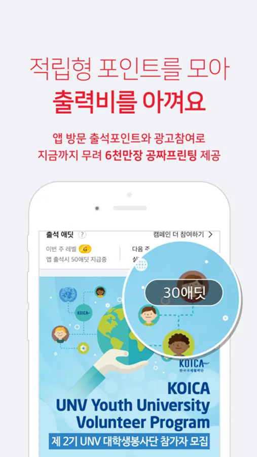 4. 공모전, 채용정보 그리고 쿠폰까지 유용한 광고캠페인을 통해 애딧을 충전하고 4년 내내 무료프린팅 하세요.