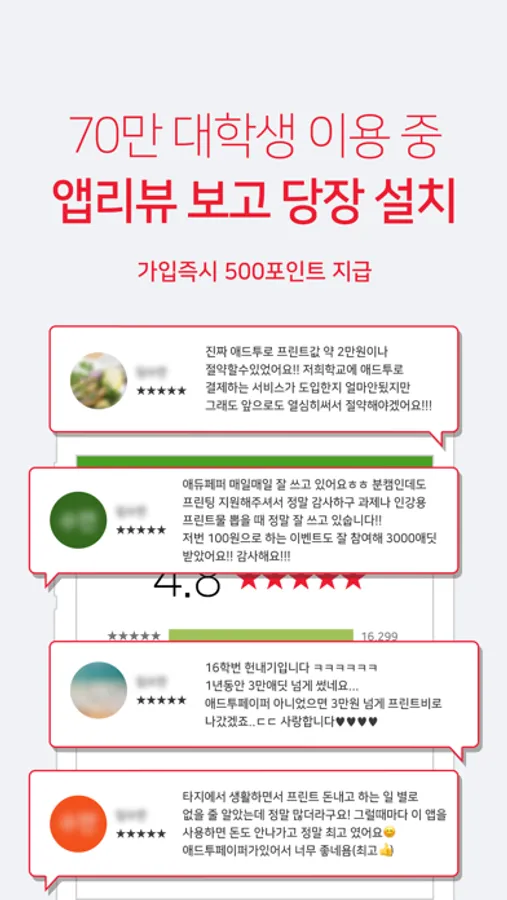 > 애드투페이퍼 앱 설치만 해도 프린팅 포인트 "애딧" 500원 선물