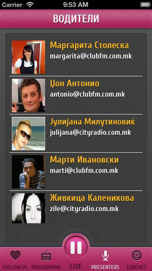 Our creative team of professional journalists initiates and develop interactive program with interesting and unusual moments about people and their stories. On a daily base, we communicate with the world and the world communicates with us. Stay tuned with our application and be a part of our unforgettable journey. Everyday…everywhere… 103,4 CLUB FM