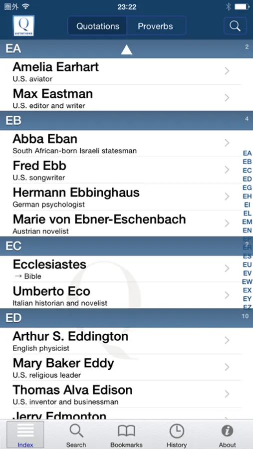 * The ability to share favorite quotations and proverbs via email, Twitter, Facebook, and Evernote
