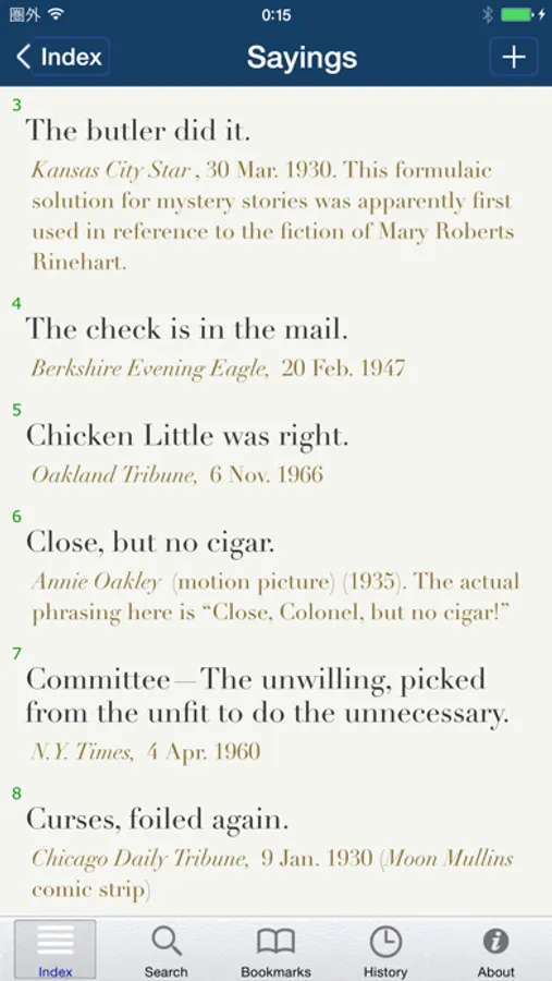 The content has a unique focus on American quotations and proverbs, and includes topics from literary and historical sources to popular culture, sports, computers, science, politics, law, and the social sciences. The app will allow visitors to seek specific quotes, search by subject, or just enjoy browsing. The app provides a fun, highly-usable experience for lovers of words and language everywhere.
